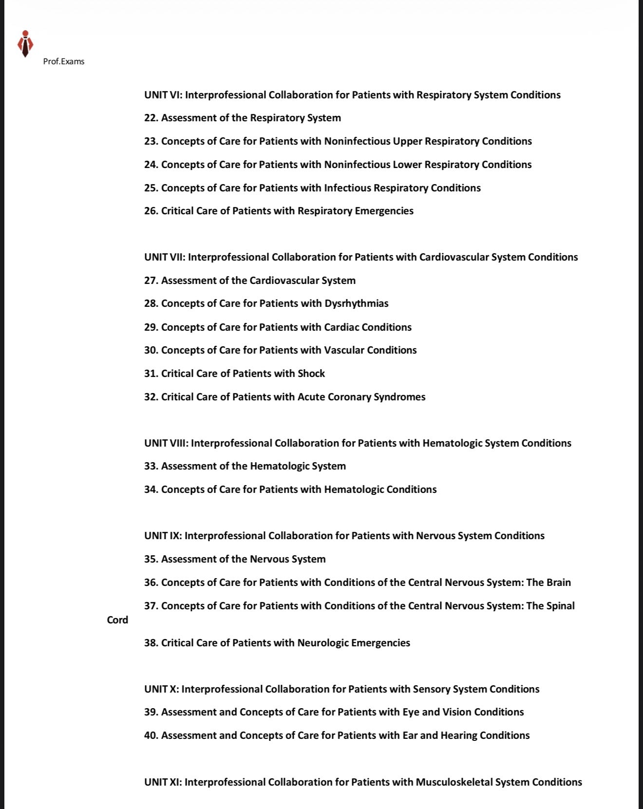 It provides an extensive set of exam-style questions focused on clinical judgment, patient management, and interprofessional collaboration in nursing care.